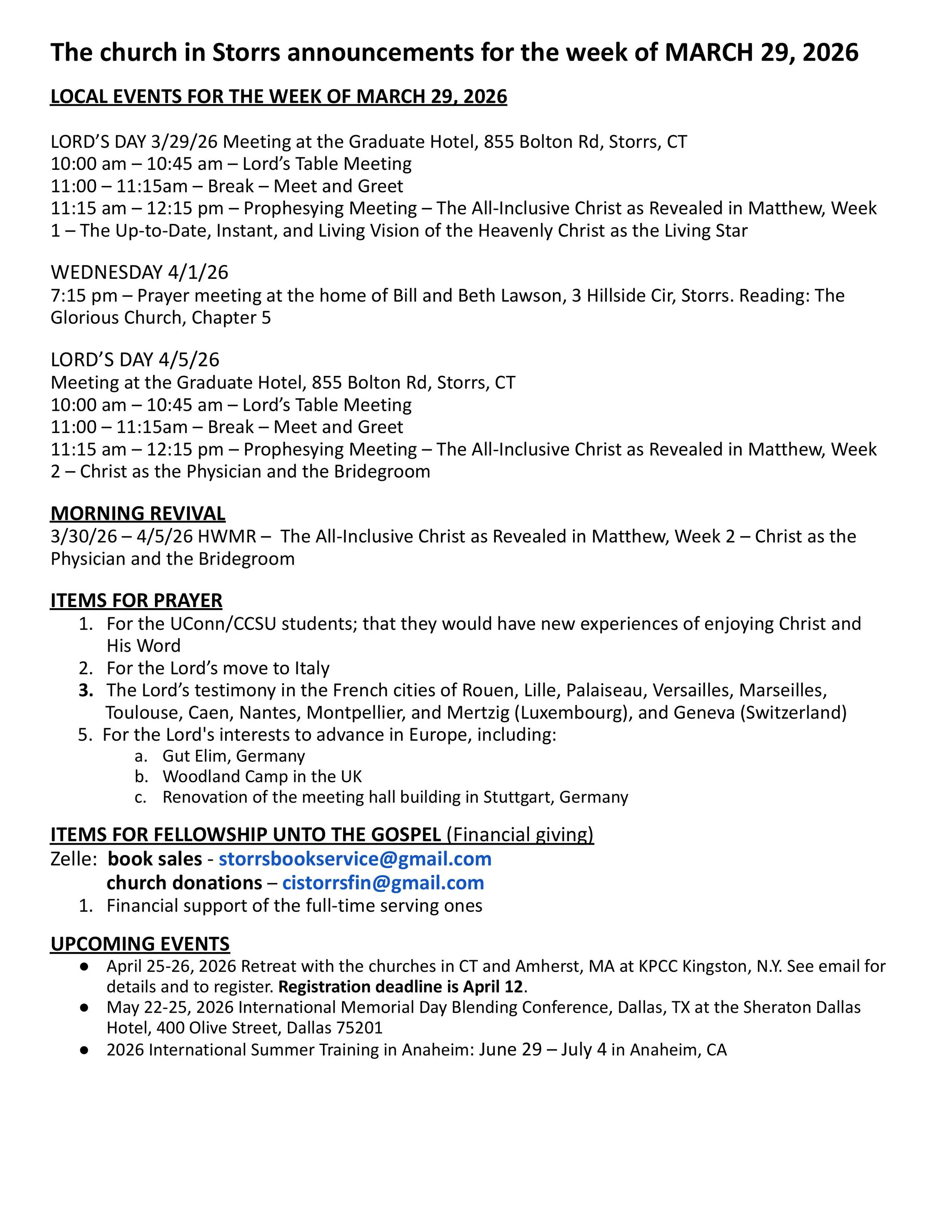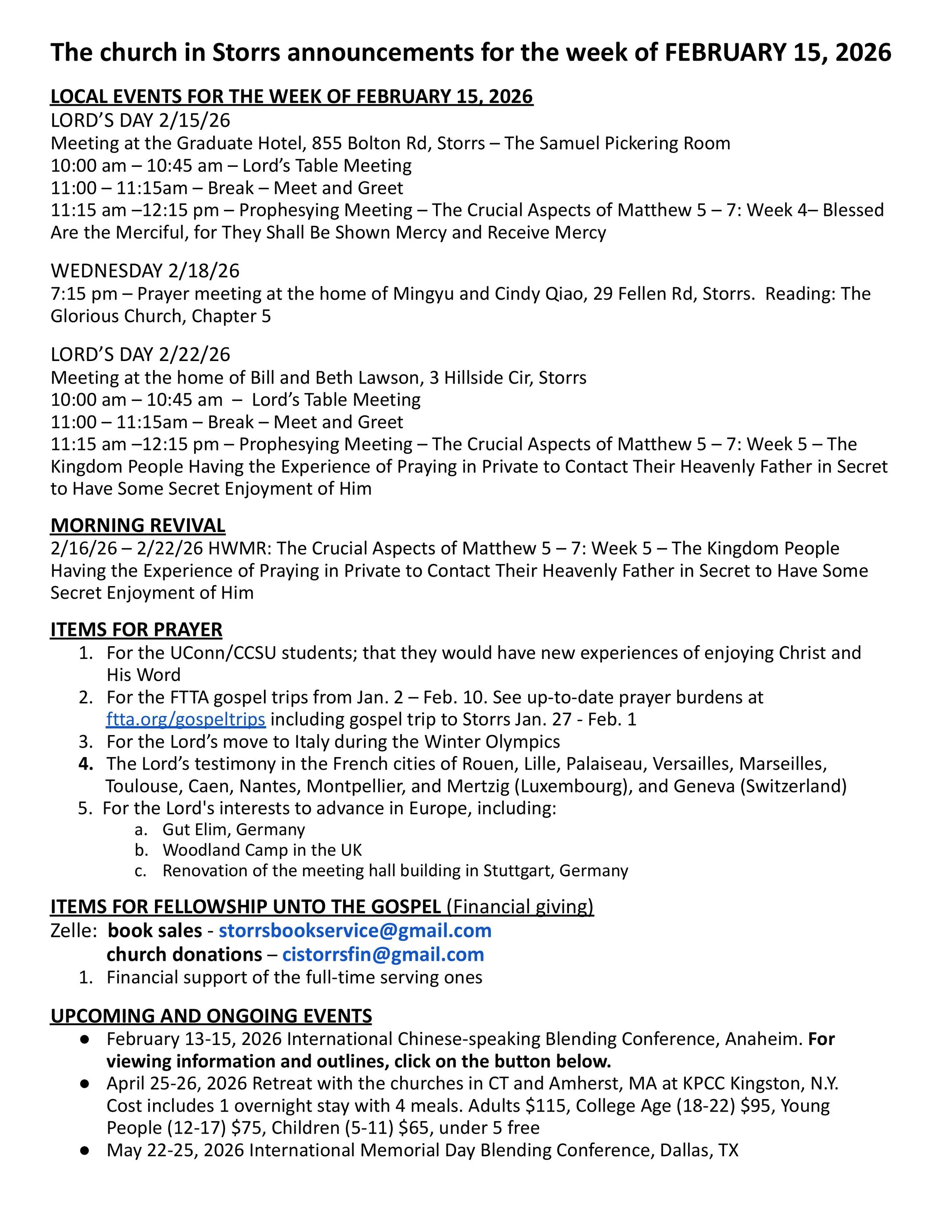 Announcements